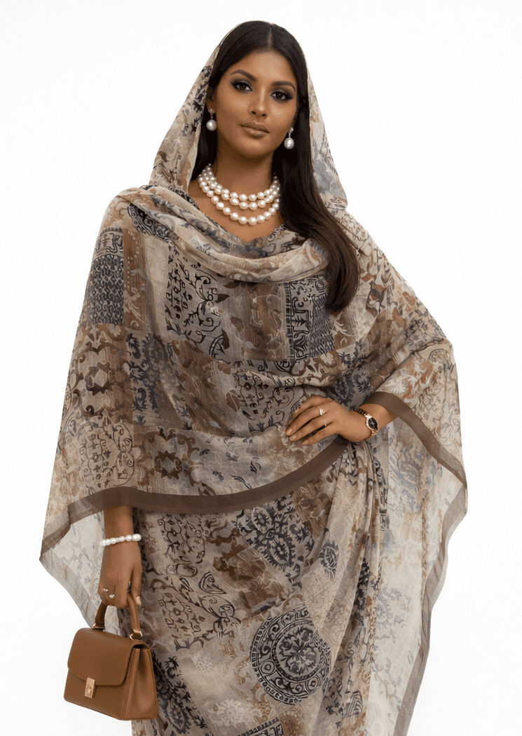 Beige Pattern Half Width Voile. Width1.15 Cm, Weight 0.450 Grams, Hand Wash.