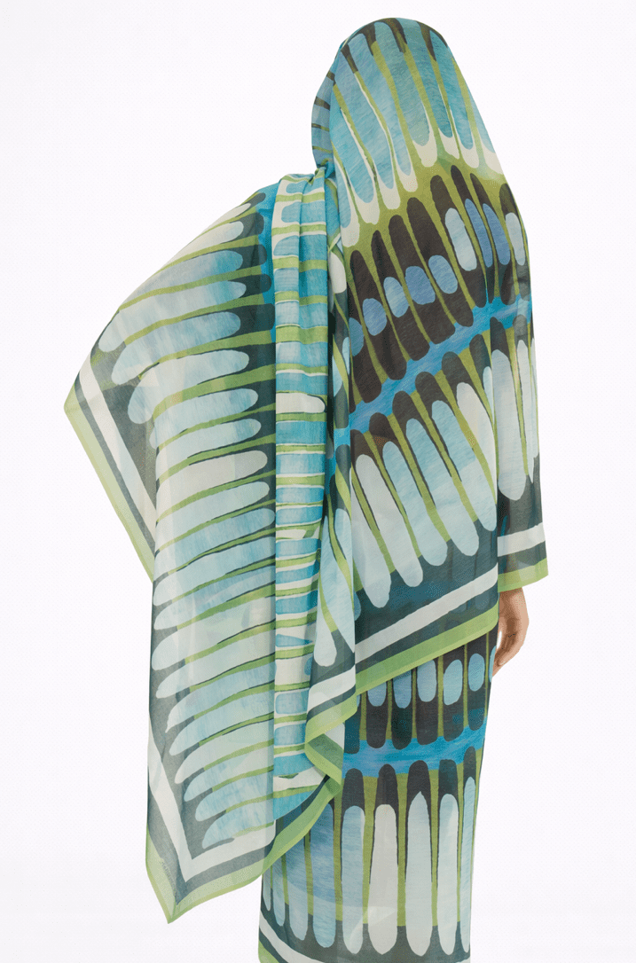 Blue Pattern Half Width Voile. Width1.15 Cm, Weight 0.450 Grams, Hand Wash.
