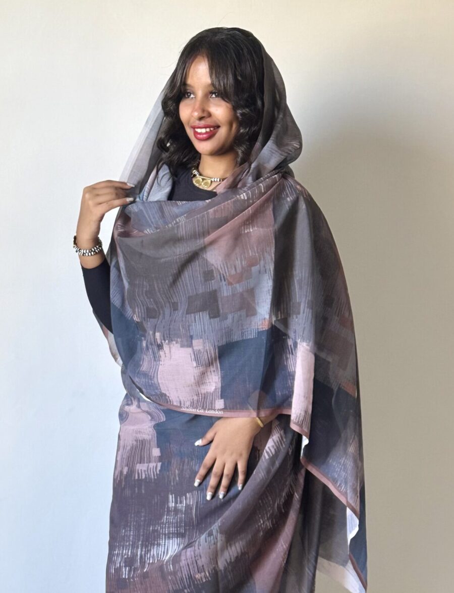Grey/Nude Pattern Half Width Voile. Width1.17 Cm, Weight 0.450 Grams, Hand Wash.