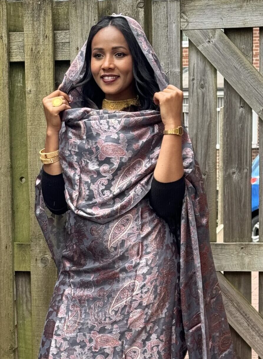 Grey Pattern Half Width Jacquard Silk. Width 1.15 Cm. Weight .350 Grams. Unstable Fabric. Hand Wash.