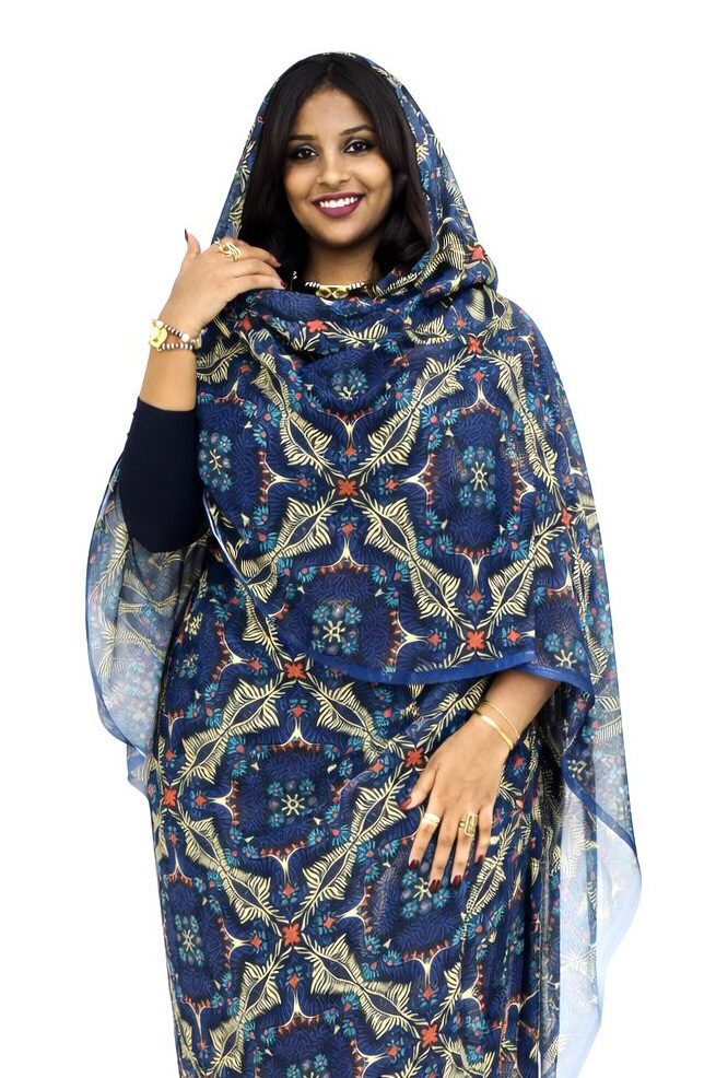 Navy Blue Floral Half Width Voile. Width1.15 Cm, Weight 0.450 Grams, Hand Wash.