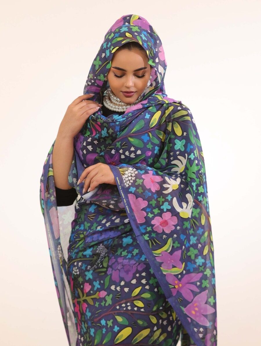Navy Floral Full Width Swiss Voile. Width1.40 Cm, Weight 0.450 Grams, Hand Wash.