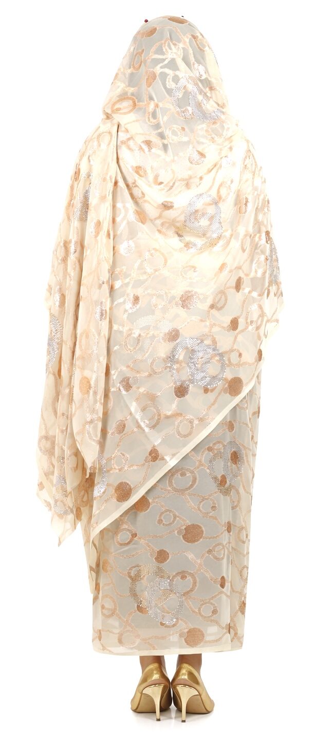 Off White Pattern Sparkle Half Width Silk. Gold Lurex And Sequence. Width 1.15 Cm. Weight .350 Grams. Unstable Fabric. Hand Wash.