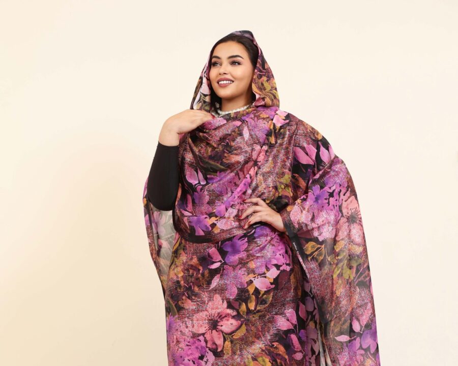 Olive/Pink Floral Half Width Swiss Foil Voile. Width1.20 Cm, Weight 0.500 Grams, Hand Wash. SHIPPING ON 7th OF JANUARY