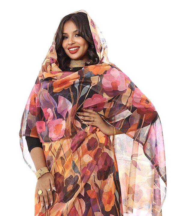 Be the first to review “Persimmon Floral Sparkle Half Width Silk”