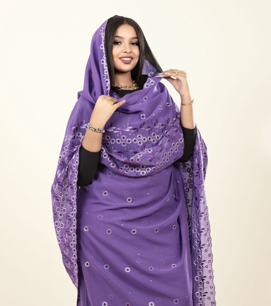Purple Floral Full Width Embroidery Voile. Weight 0.500 Grams. Hand Wash.