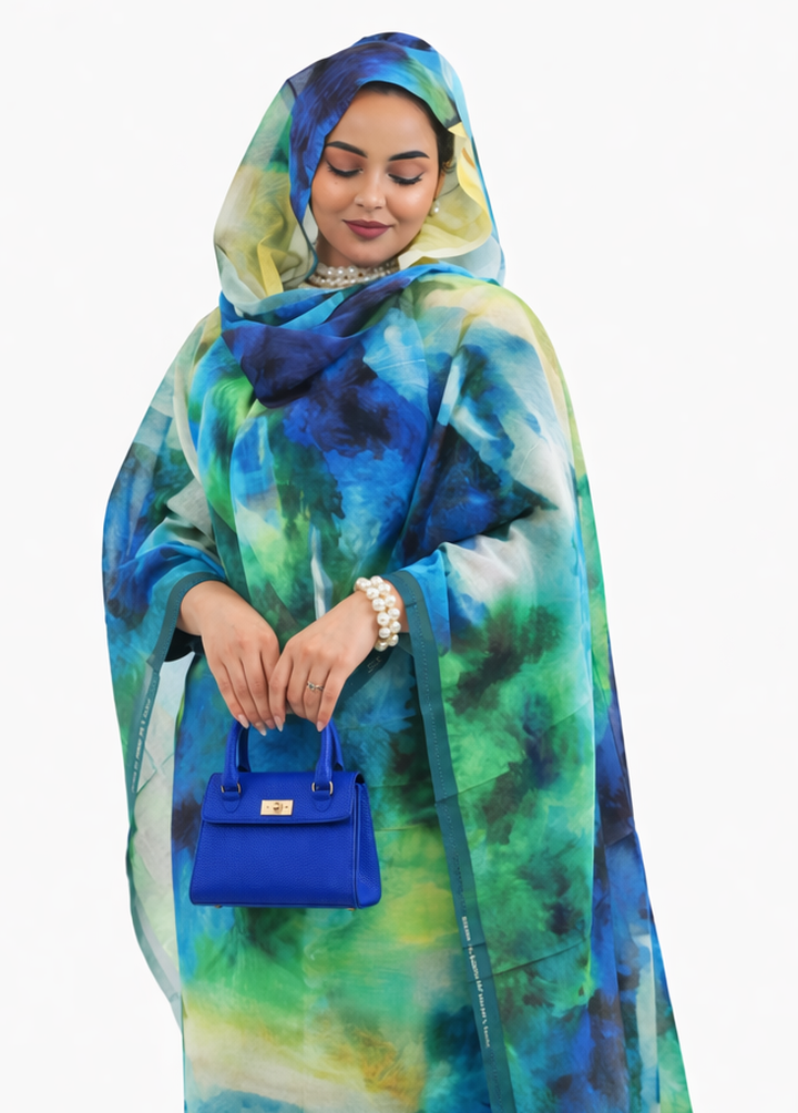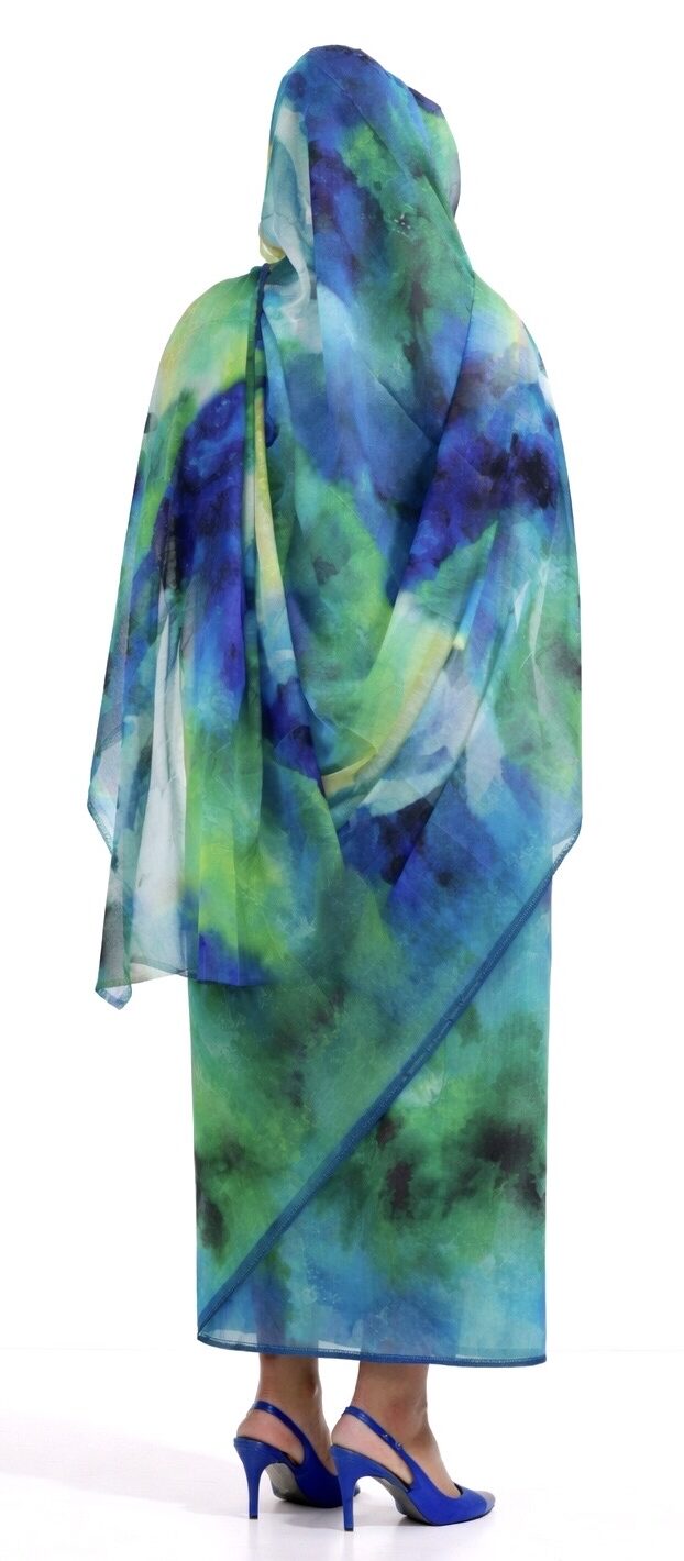 Turquoise/Blue Pattern Full Width Swiss Voile. Width1.40 Cm, Weight 0.450 Grams, Hand Wash.