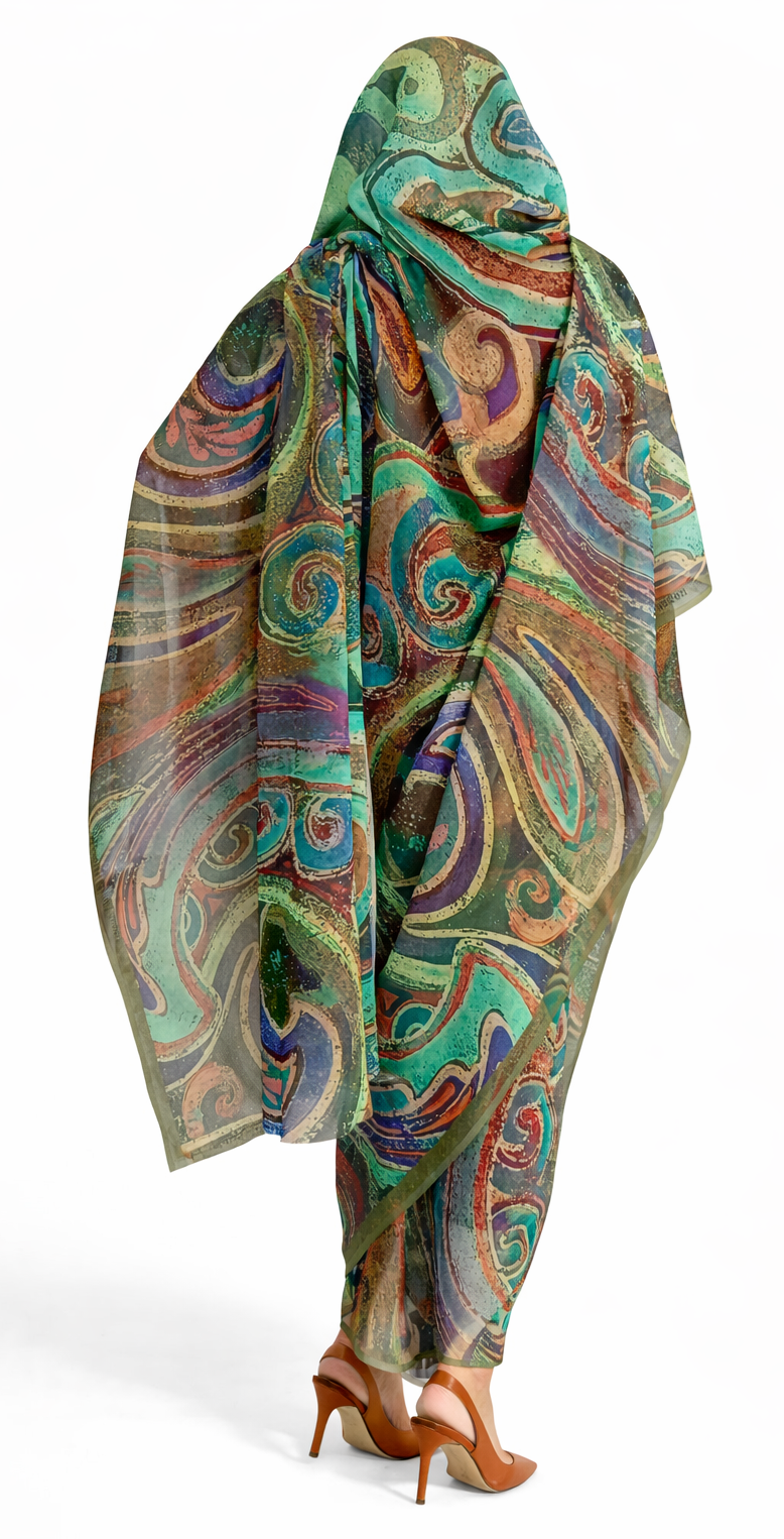 Turquoise Pattern Full Width Voile. Width1.40 Cm, Weight 0.500 Grams, Hand Wash.